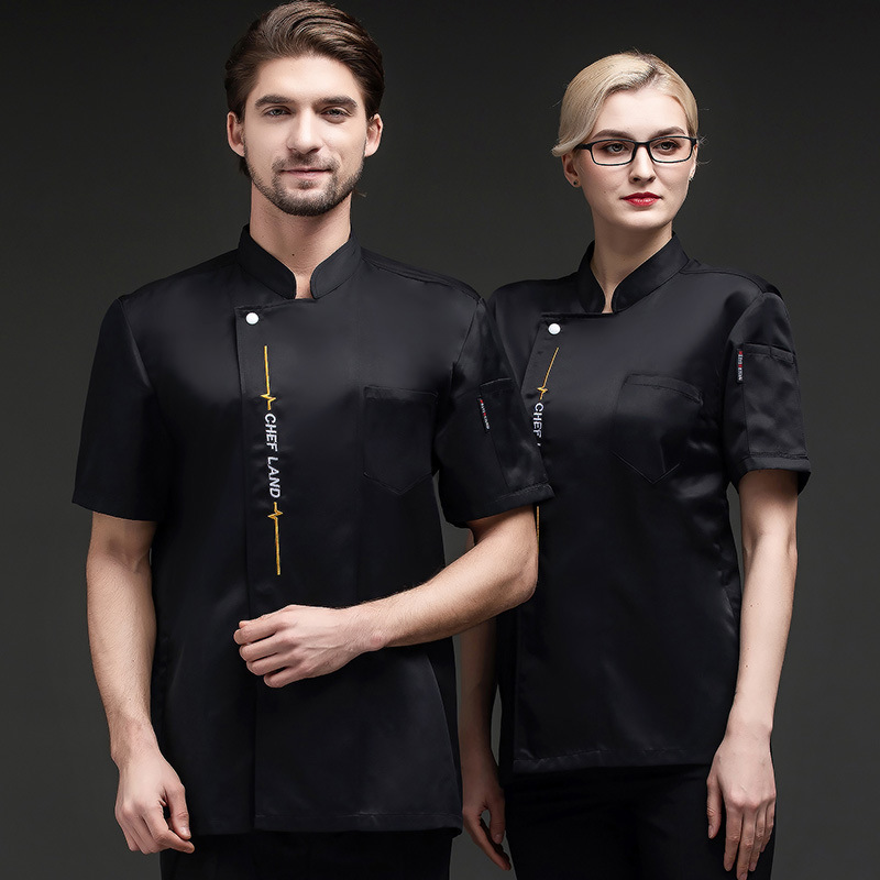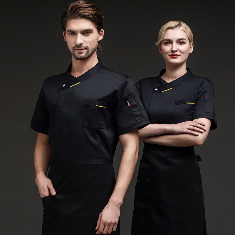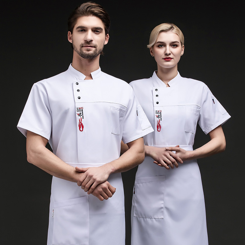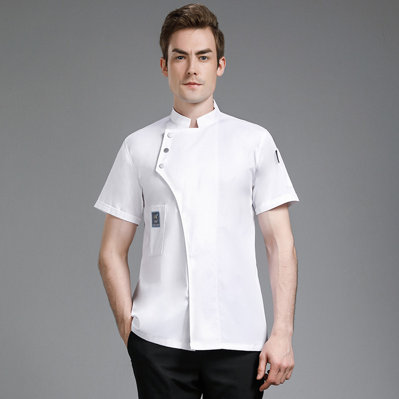 シェフ作業服男性キッチン半袖飲食夏長袖レストラン通気立襟女性シェフ服