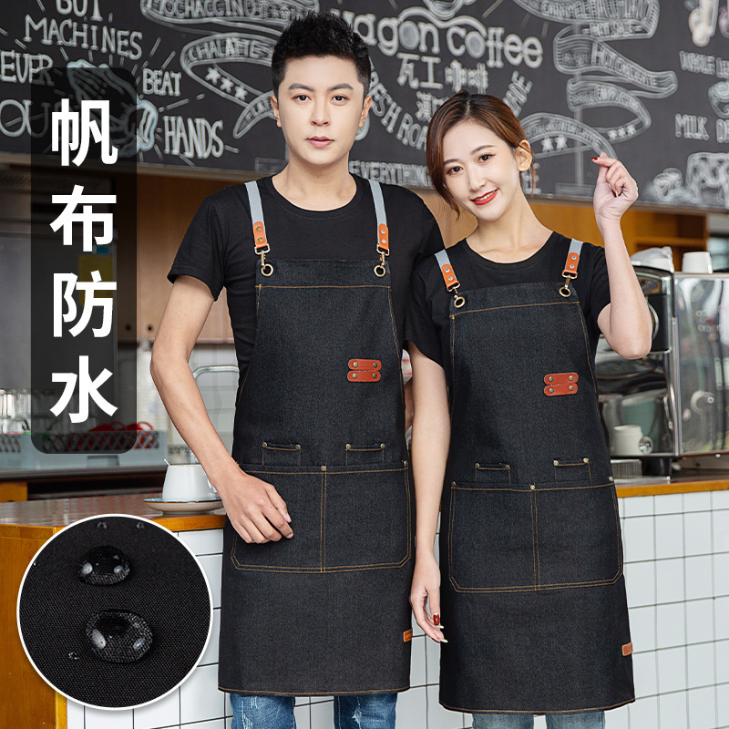 新型ネットレッドキャンバス耐摩耗エプロンレストランの従業員は男女ミルクティー美容店の作業エプロンを描いて刺繍します。