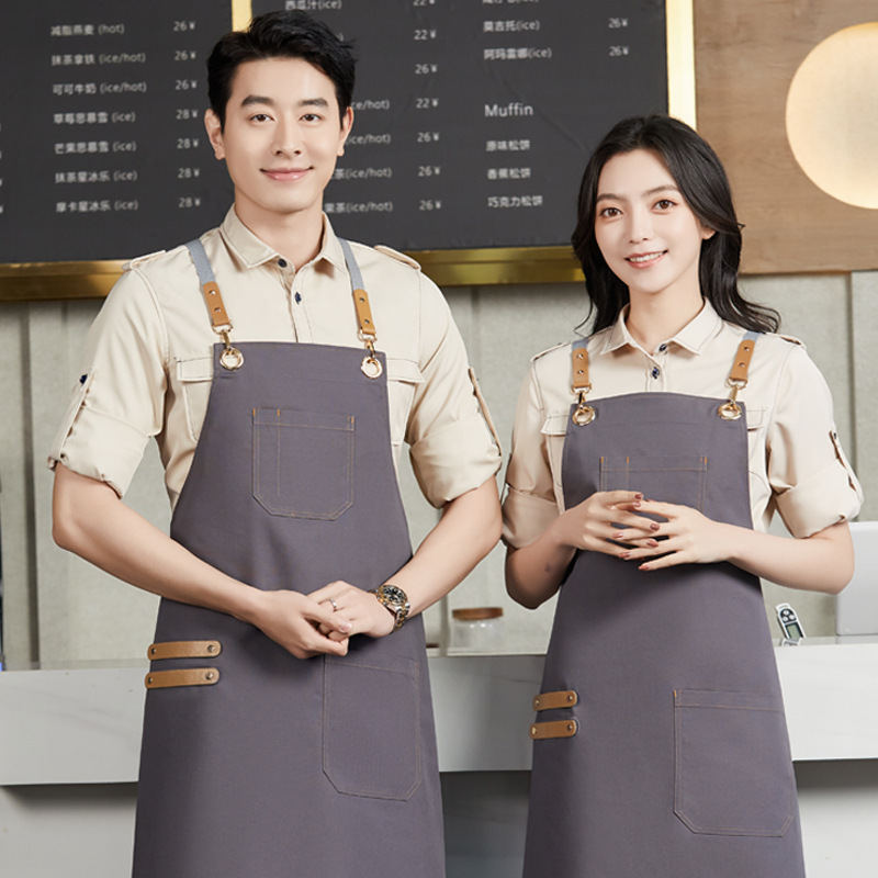 火鍋店厨房防油作業服ネイルコーヒー師従業員の長いエプロン刺繍ロゴネットファッション