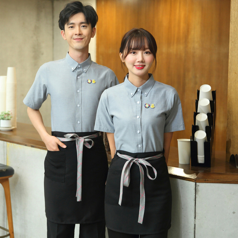 ミルクティー店ケーキ店のサービスマン作業服半袖シャツ西レストランカフェ工服喜茶印字ロゴ