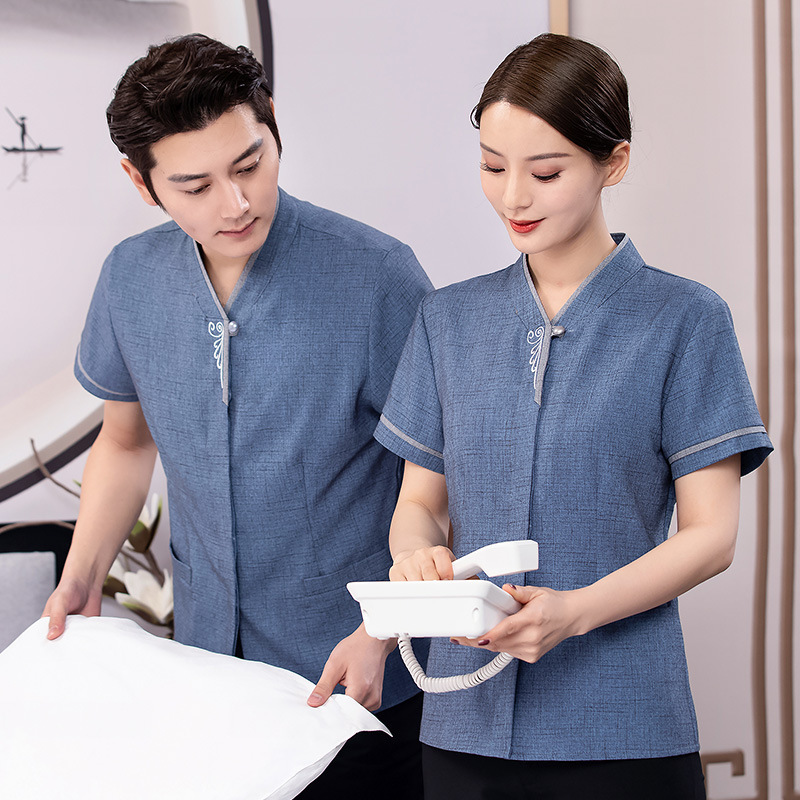 清潔服半袖ホテル客室清潔作業服夏服女性通気性不動産清潔作業服刺繍