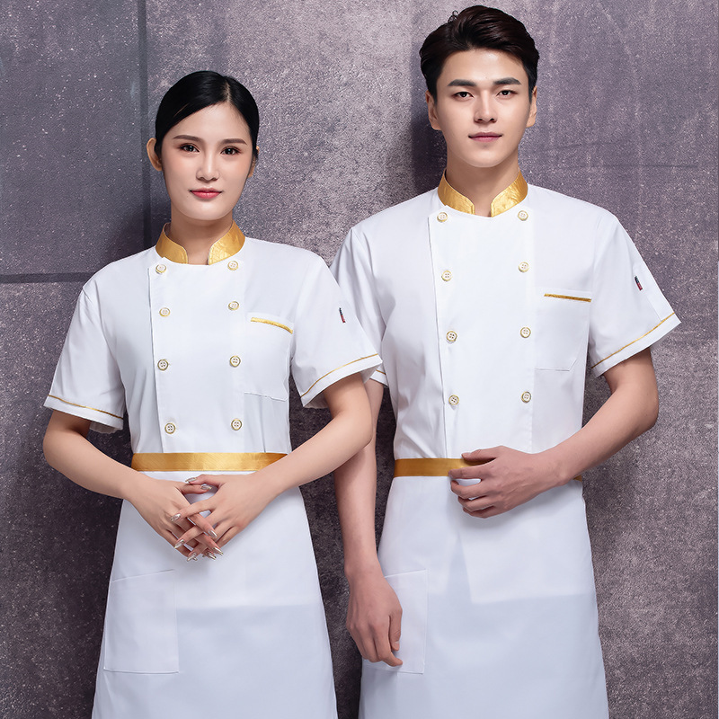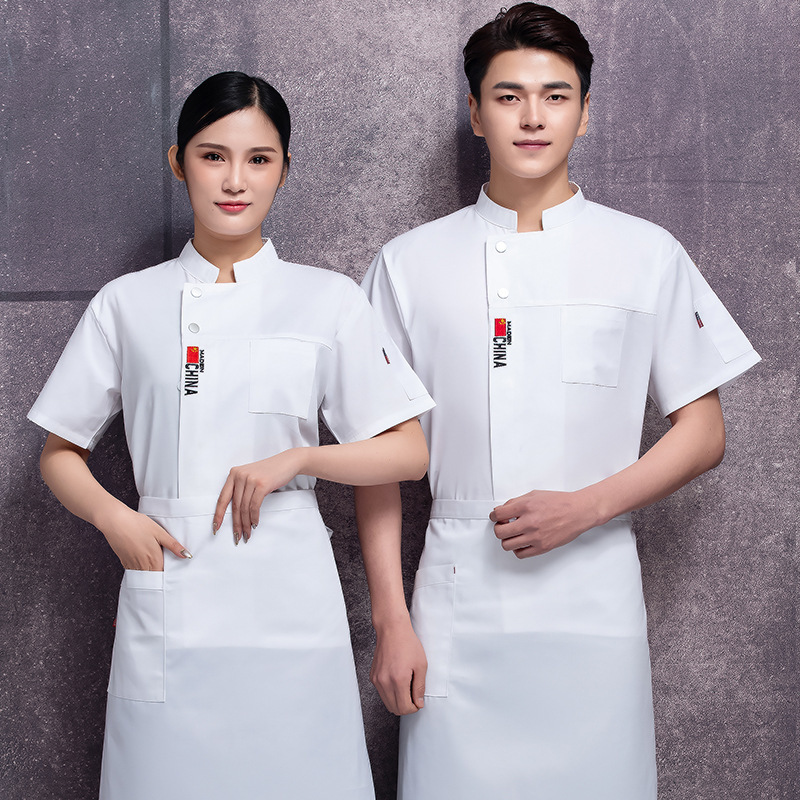 料理人作業服男性半袖夏レストランレストラン食堂後料理人シェフ長黄襟前ホール服装