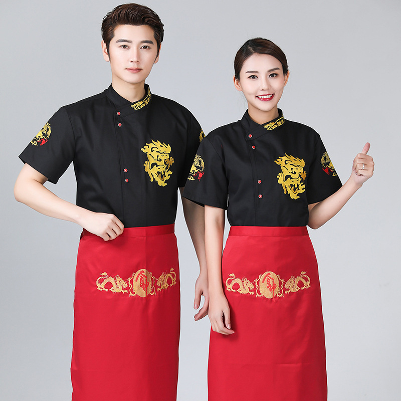 飲食中国風龍衣シェフ服長半袖男夏総料理シェフキッチン作業服ファッション刺繍龍