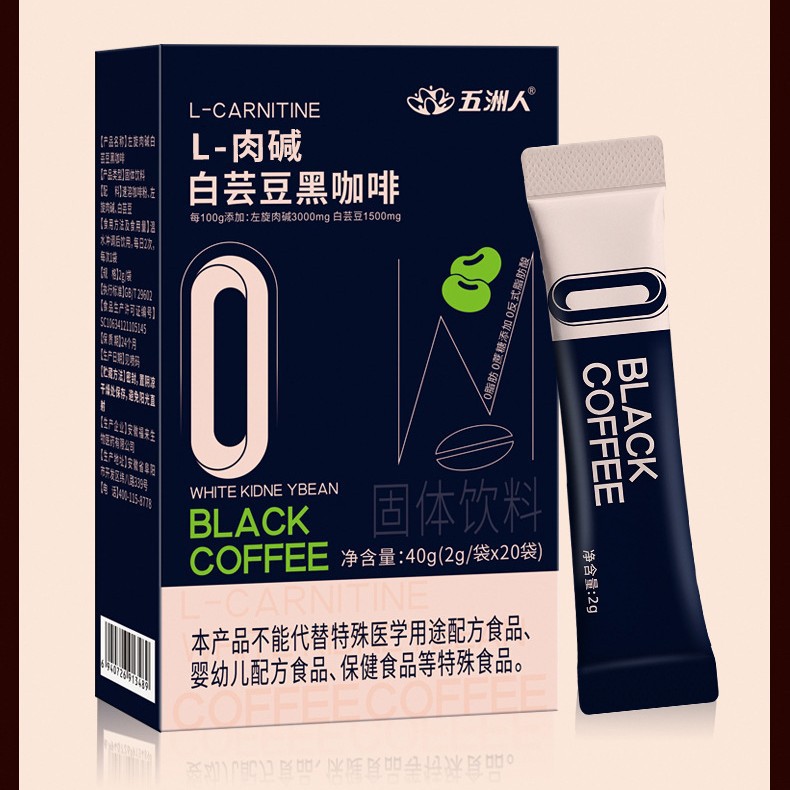 五洲人L-カルニチン白芸豆黒コーヒー0エステル砂糖なしアメリカインスタントコーヒー独立条入れ20袋/箱