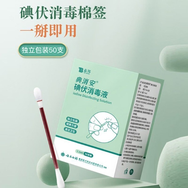 泰邦典消安ヨウ素ボルト消毒液消毒綿棒綿棒消毒綿独立包装携帯便利50本