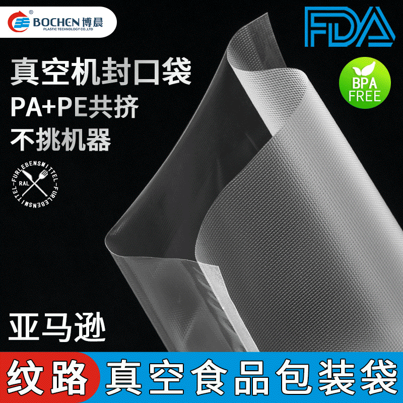 博晨はPAPE 7層共押出ナイロンフラット真空袋、増粘光沢透明食品保存真空袋を生産しています