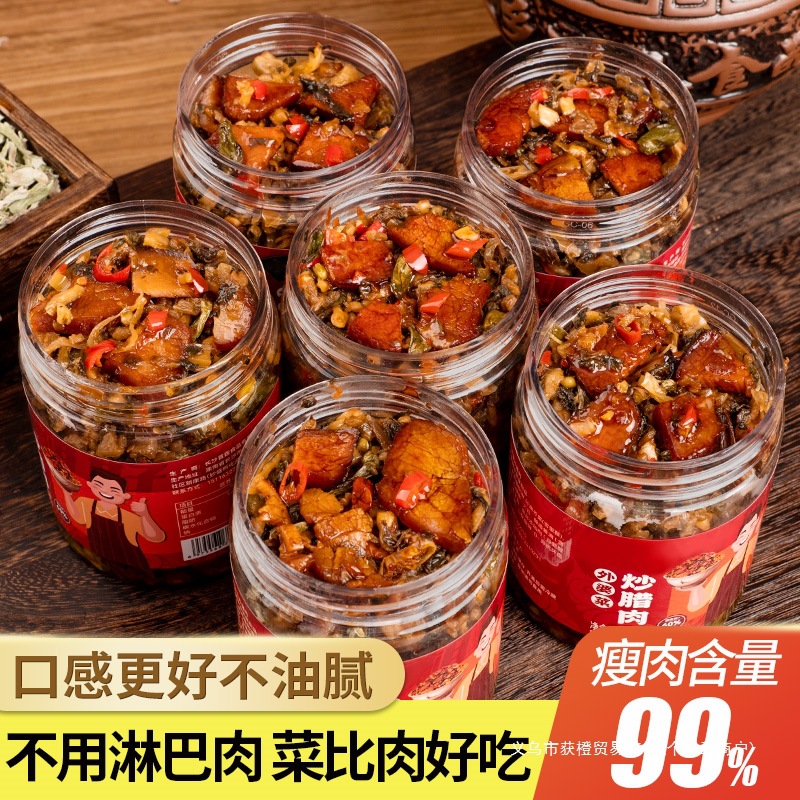やせたベーコンのおばあさんの料理の漬け物湘西のプレハブ料理の湖南の特産品は味の正統の香辛料の瓶を開きます。