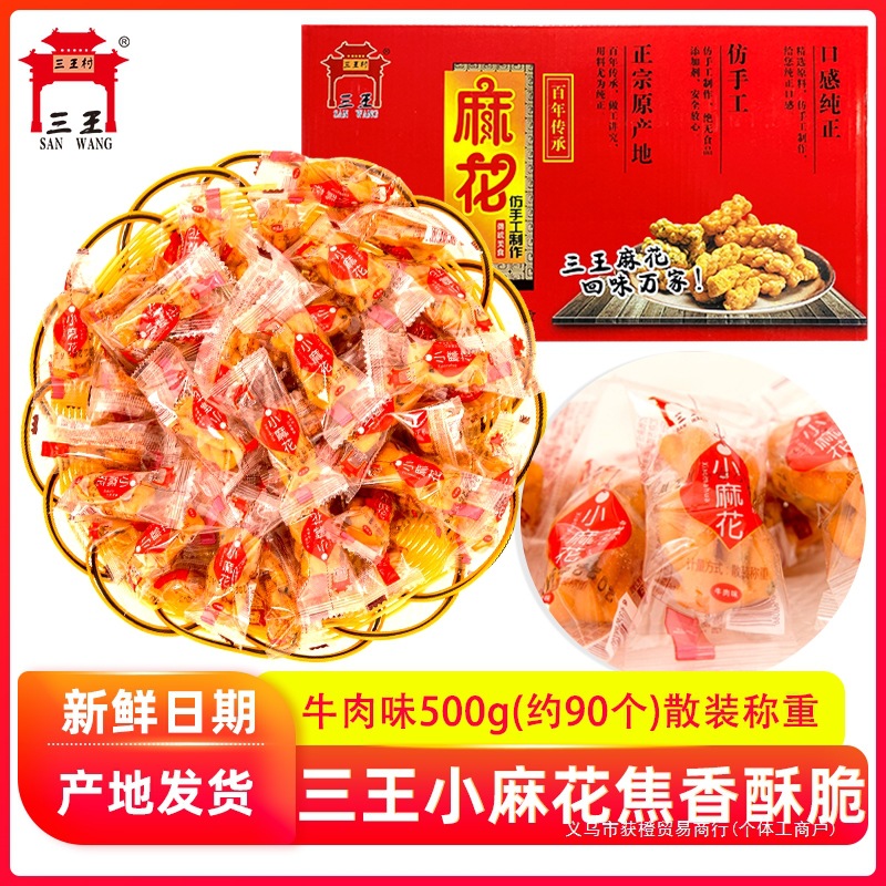 三王小麻花牛肉味500gばら積小包装開封張記間食単独包装麻花商用