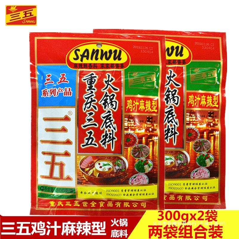 三五鍋底料鶏汁麻辣型300gx2袋鶏汁味重慶老手湯香鍋商用調味料