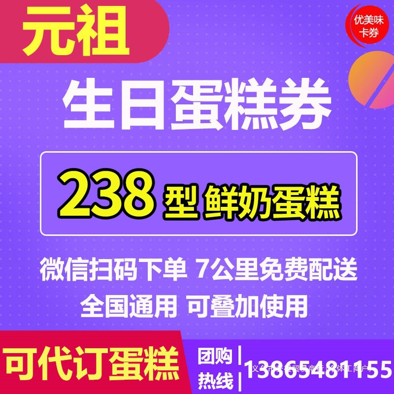 元祖電子券ケーキ券誕生日ケーキクーポン券238元電子現金券全国共通