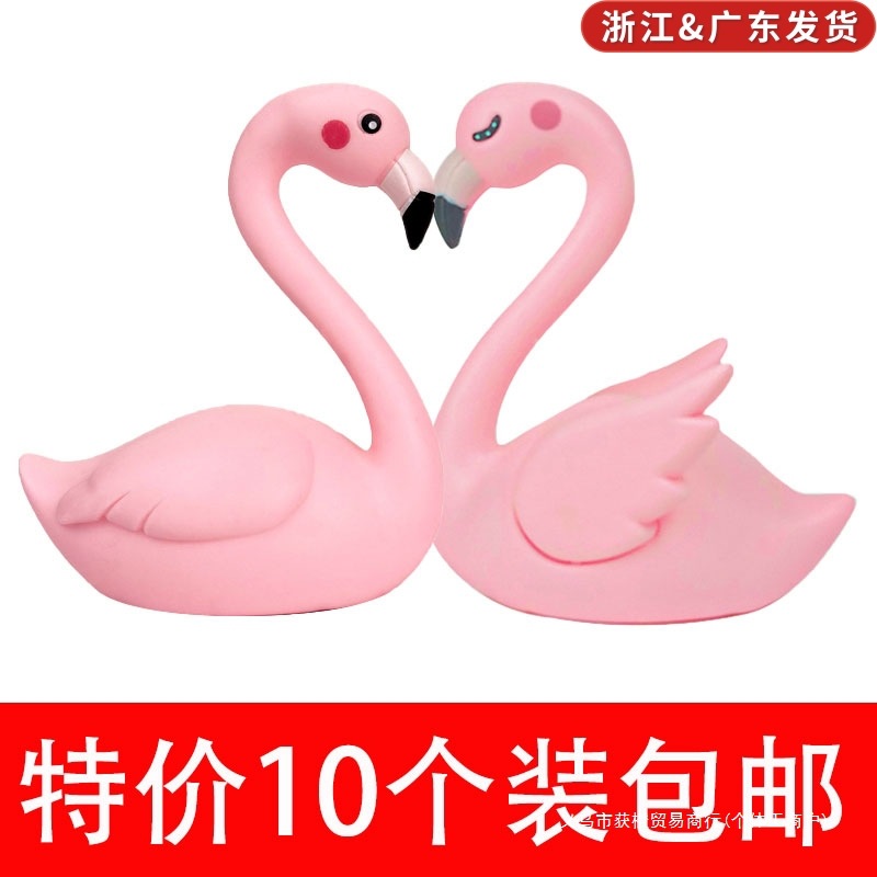 フラミンゴのケーキは七夕のバレンタインデーの王女の誕生日のパーティーの白鳥の置物のネットの赤いプラグインの10個を飾ります。