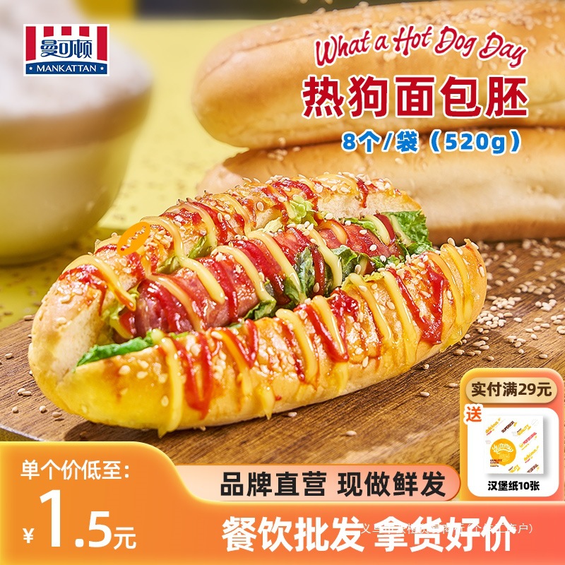マンコトンホットドッグパン胚インスタント商用ソーセージハンバーガー胚DIY学生栄養朝食【5日間短保】