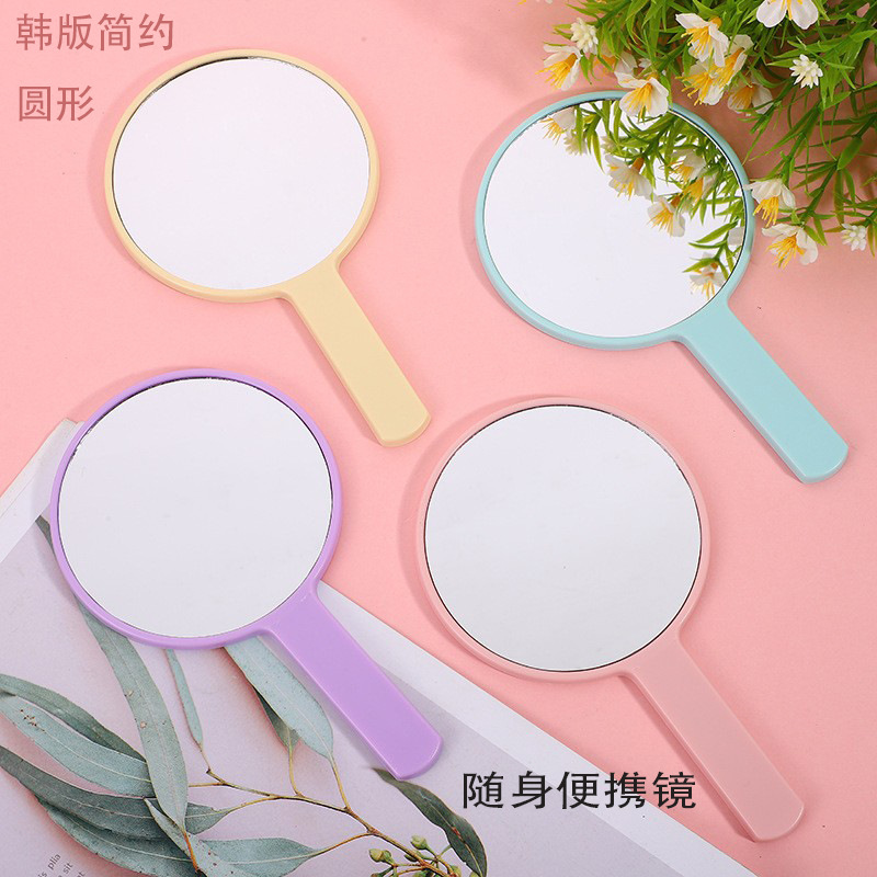 韓国版シンプルな円形携帯鏡かわいい学生は美容化粧を手に持って鏡を持ってdiy生放送します。