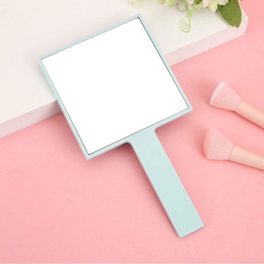 ミラー大きいサイズのマカロンのハンドルの鏡の女子学生の携帯するファッションの美しい化粧の鏡の高清の四角形のハンドルの鏡