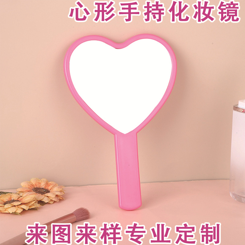 女の子向けのクロスボーダーホットスタイルハンドヘルドミラー、ハートハンドル、小さなミラー、かわいい化粧鏡、ポータブル片面ハート型ミラー