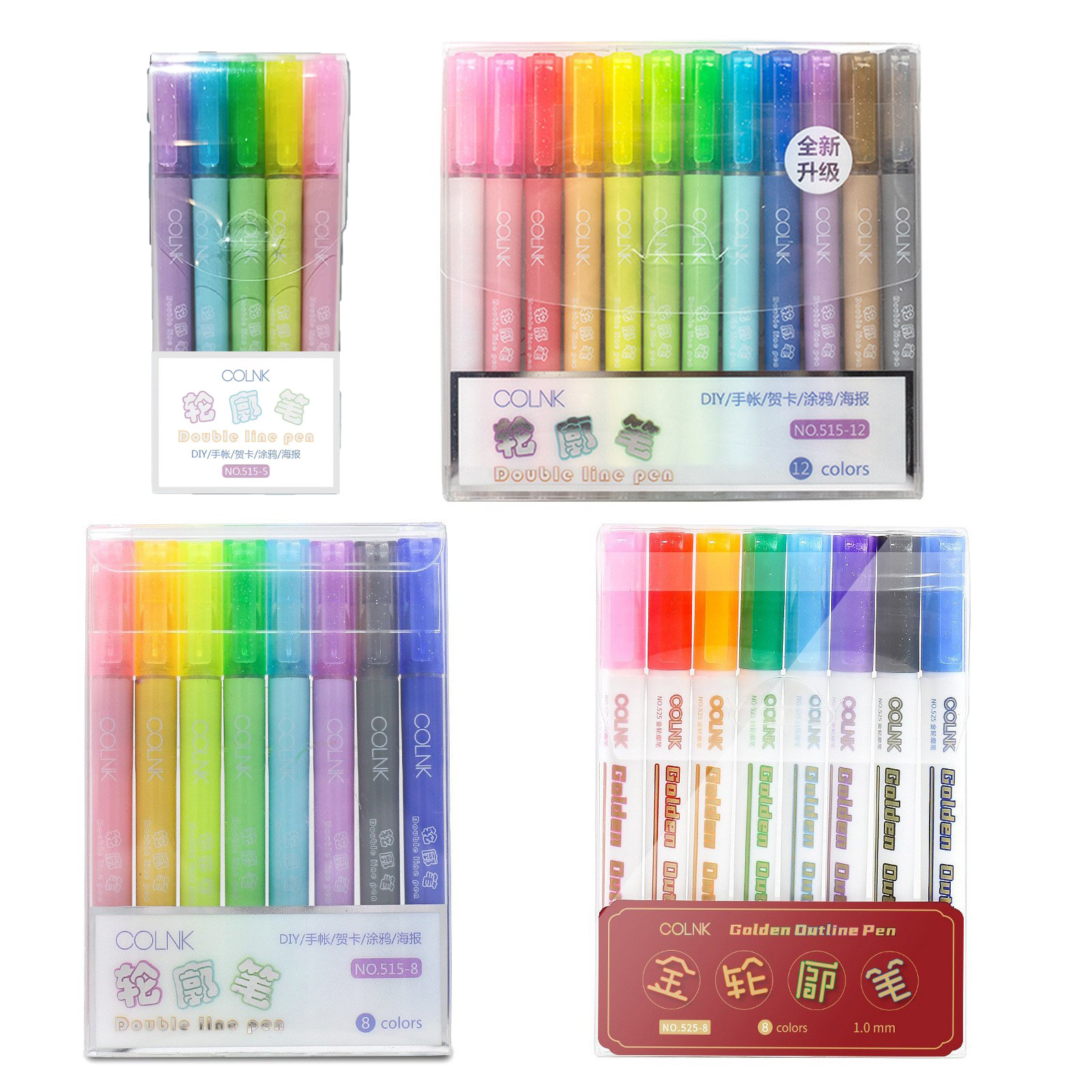 コリン515カラー輪郭ペン学生用手帳絵画輪郭ペン8色12色セット2色蛍光ペン