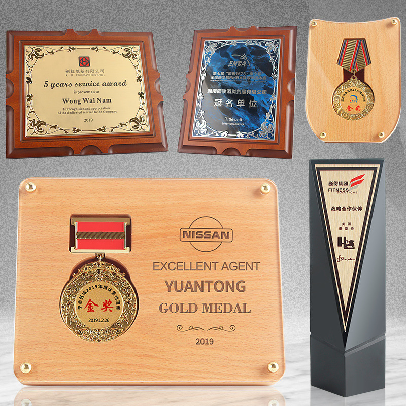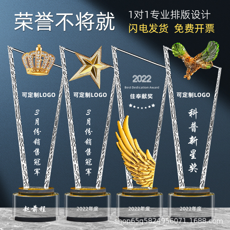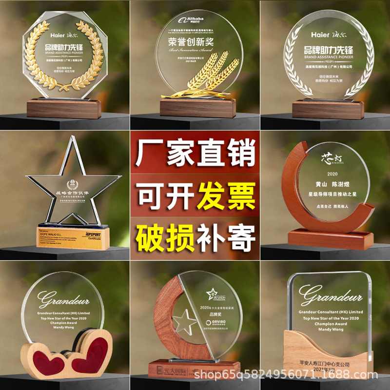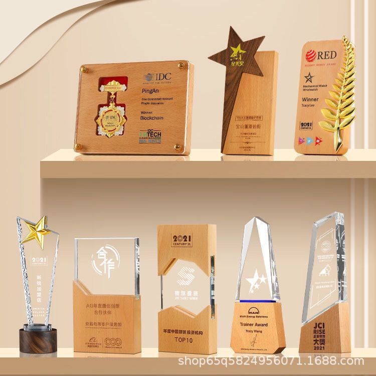 実木トロフィーカスタマイズ創意水晶カラー国潮国風スポーツ競技優勝優秀社員周年