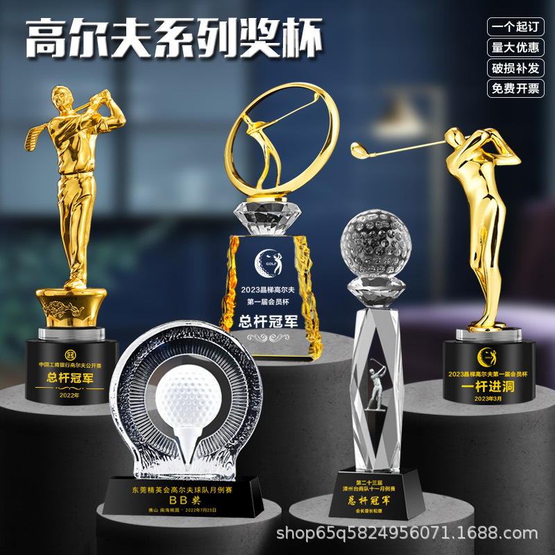 新しいゴルフのトロフィーは創造性の金属の総ネットの竿を決めて穴の高級な水晶の試合に入って授賞することができます。