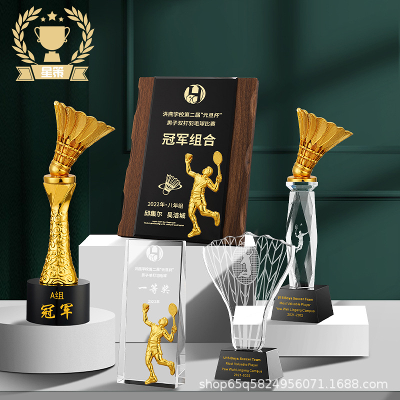 バドミントン水晶トロフィーは創意学校運動会優勝試合シングルスダブルスメダル記念品を決められます。