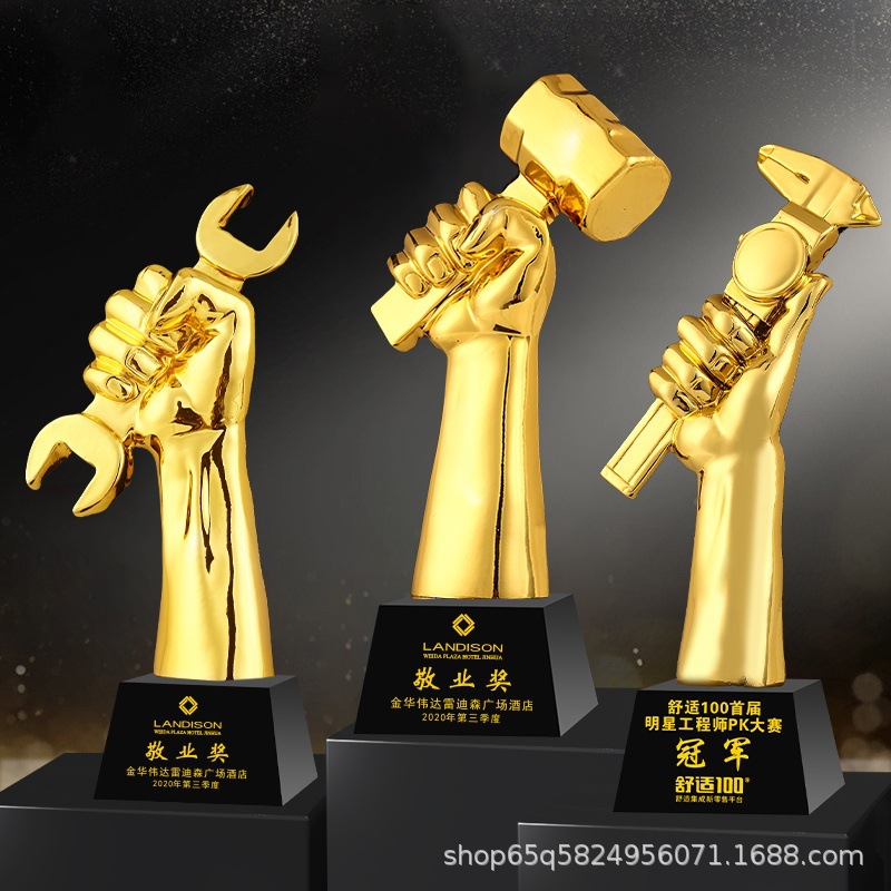 有能な職人の精神水晶ハンマーのトロフィーは鉄のハンマーのノギスのレンチのハンマーの技能の試合の優勝のメダルを決めることができます。