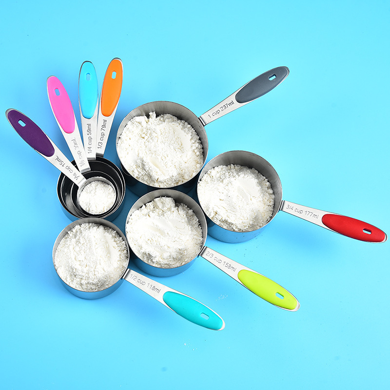 ステンレスシリコンハンドル計量カップ計量スプーン8点セット焙煎ツール滑り止めシリコンハンドル計量スプーンセット