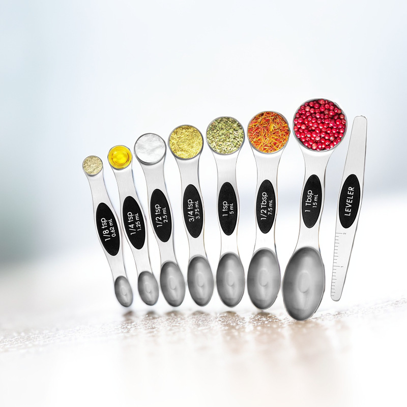 スポットダブルヘッド計量スプーン8点セットステンレス計量スプーンスケール付きグラム数スプーン計量定量スプーンティースプーン