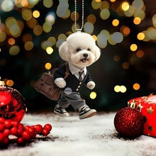 ビションフリーゼ ホリデーペンダント - 2Dアクリルフラットドッグ、ブリーフケースジュエリー付き、車、バッグに最適