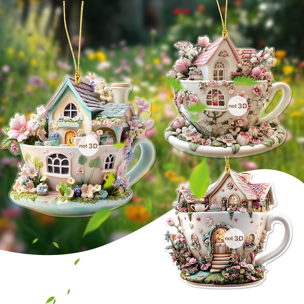 クロスボーダー新しいおとぎ話フラワーハウス 2D フラットアクリルキーホルダー車のバックミラーアクセサリーバックパックペンダント