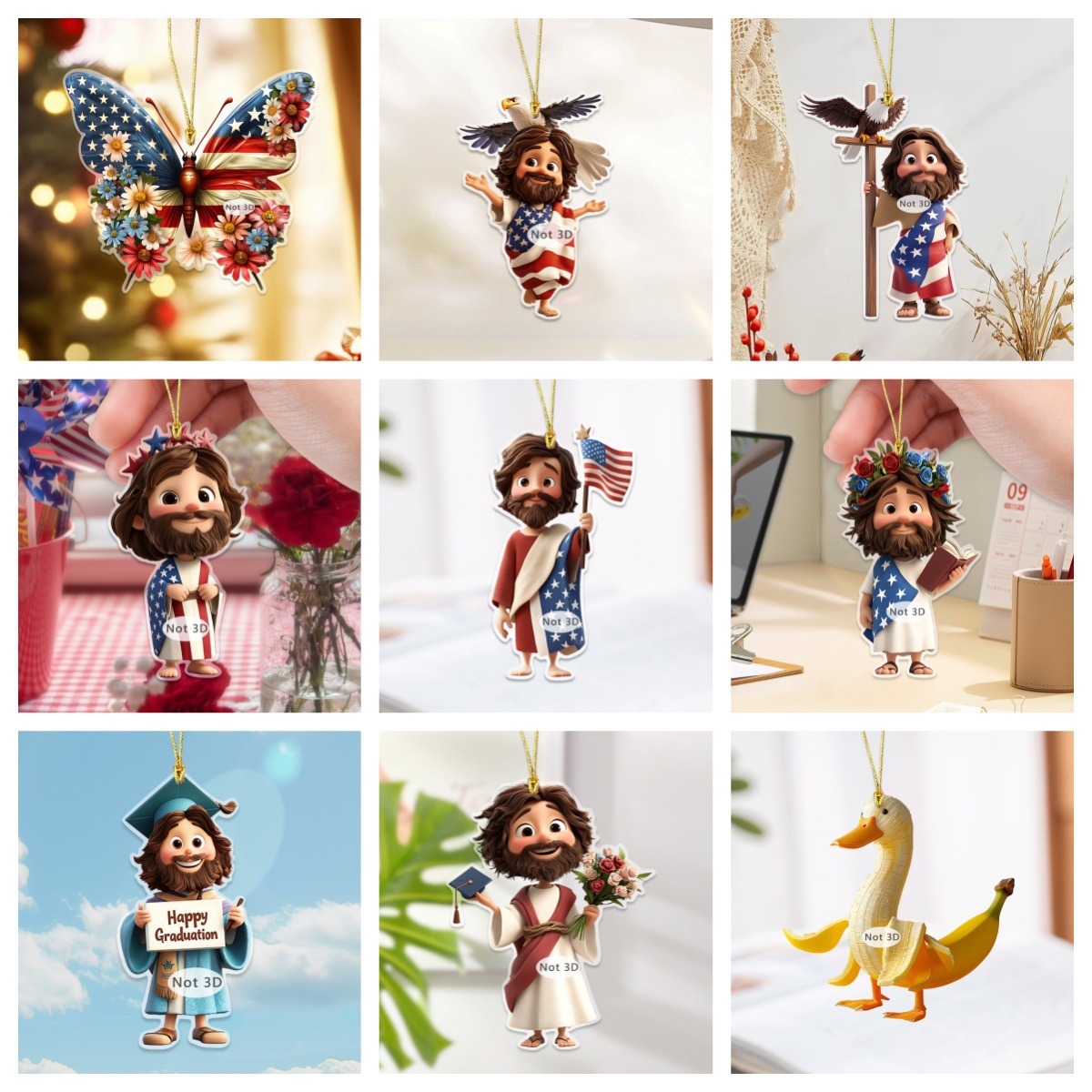 クロスボーダー独立記念日蝶柄 2D フラットアクリル車のペンダント装飾バックパック小さなペンダントタグ