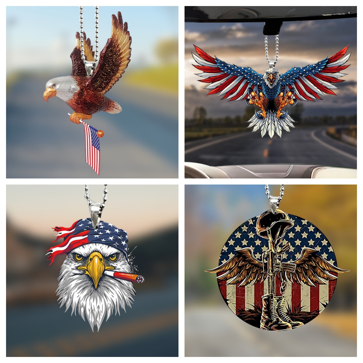 新しい 2D クロスボーダー新しいアメリカ国旗イーグル車内バックミラーペンダント特殊形状キーホルダー装飾ペンダント