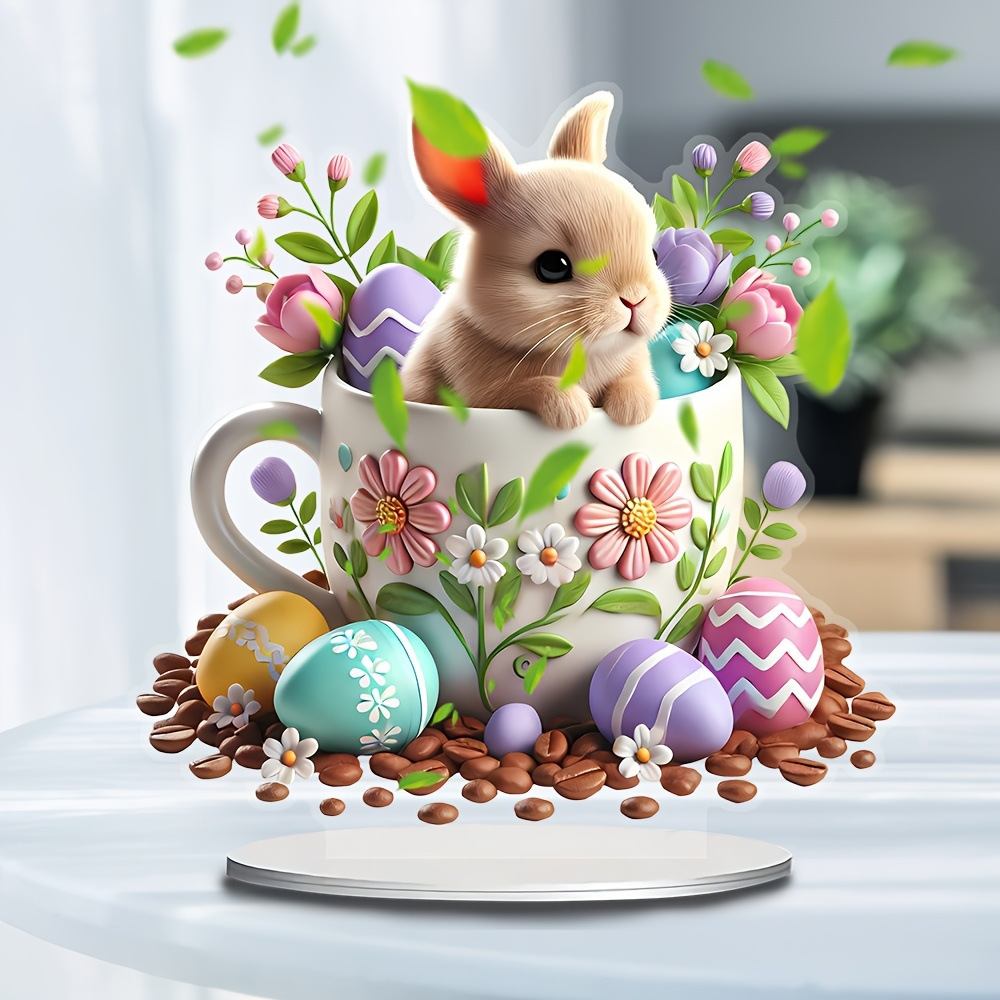 国境を越えたイースターの置物アクリル2d装飾物家庭のデスクトップ装飾ウサギの卵家庭のデスクトップ装飾品