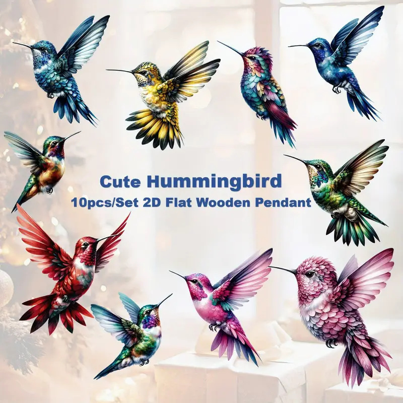 クロスボーダー新品ハチドリ木制10点置物セット祭りパーティーアクセサリーやプレゼントクリスマスペンダント