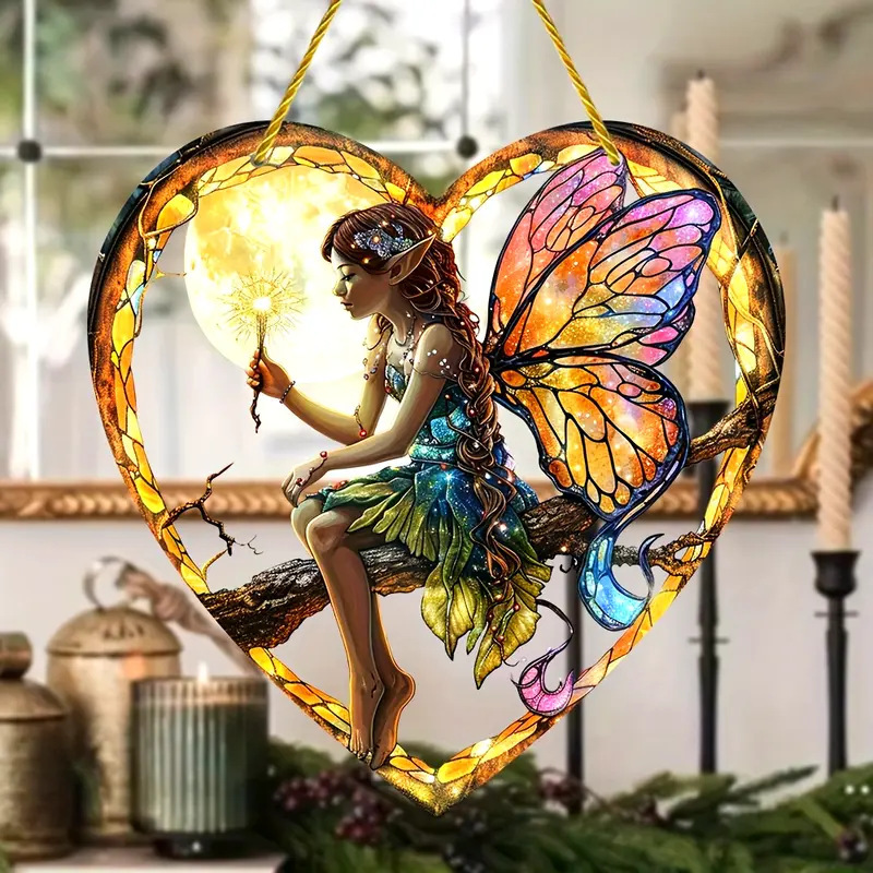 クロスボーダー爆発品新型アクリルハート型精霊花仙子母の日寝室吊り下げ家庭装飾ストラップ