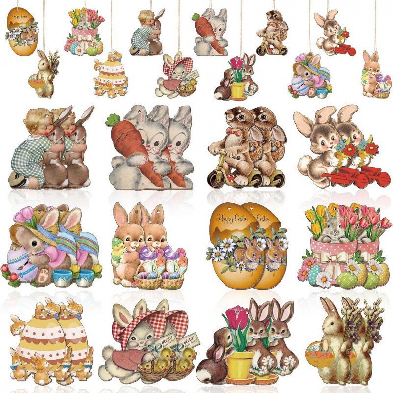 クロスボーダー新作イースター木片透かし彫り春の休日パーティーの木掛け飾りクリスマスのウサギの木掛け飾り