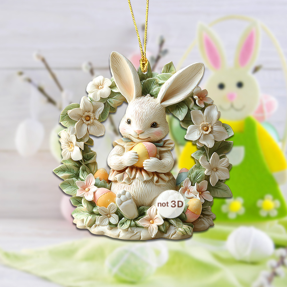 クロスボーダーのアクリル2Dペンダントのキーホルダーの車のバックミラーのアクセサリーのリュックサックの小さい掛けのイースターは花のウサギを抱いています。