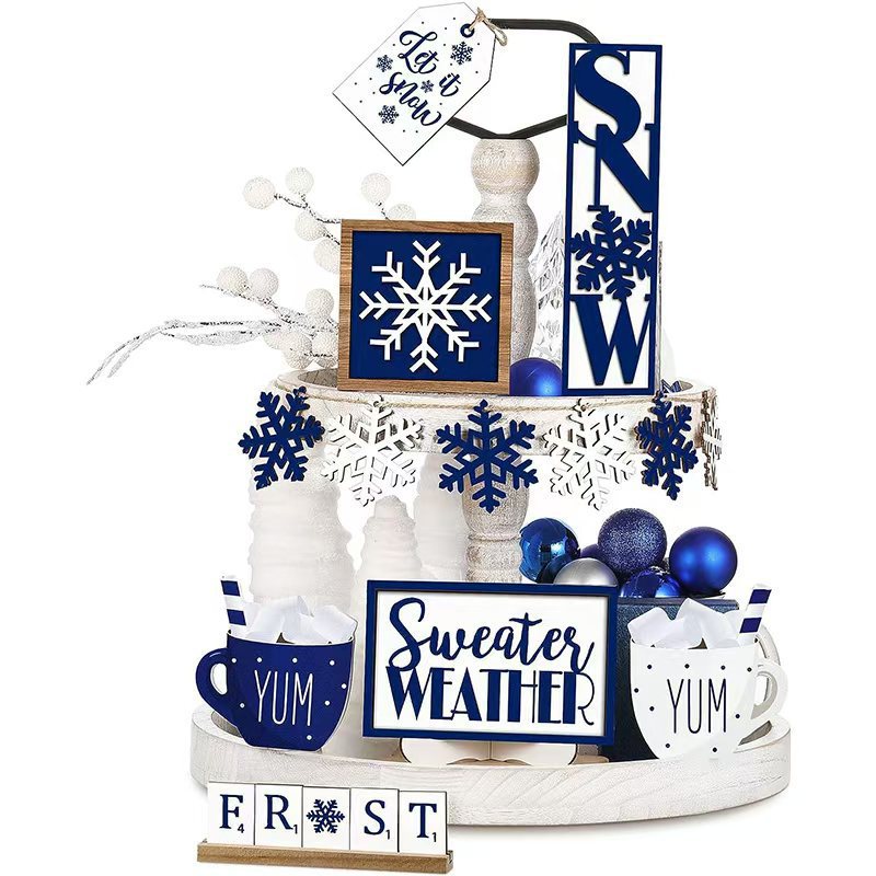 越境新品冬雪花マーク層パレット木製置物総書記装飾品休日パーティー