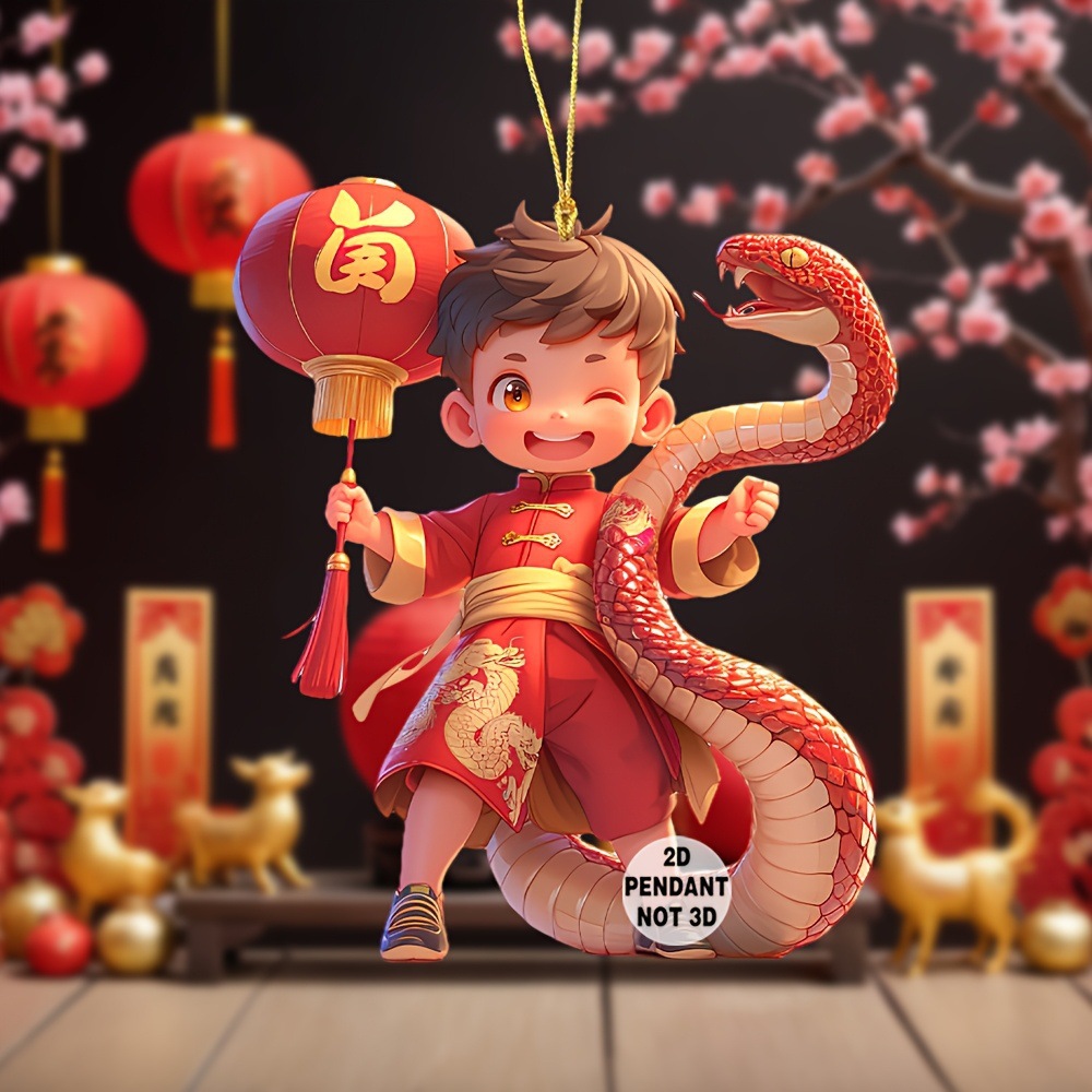 クロスボーダー古典2025蛇年アクリル少年と蛇ペンダント多目的吊り下げ装飾自動車バックパック