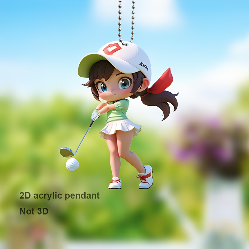 2D平面国境を越えた爆発的な魅力的なゴルフガールの車のバックミラーのキーホルダーの小さなストラップの装飾