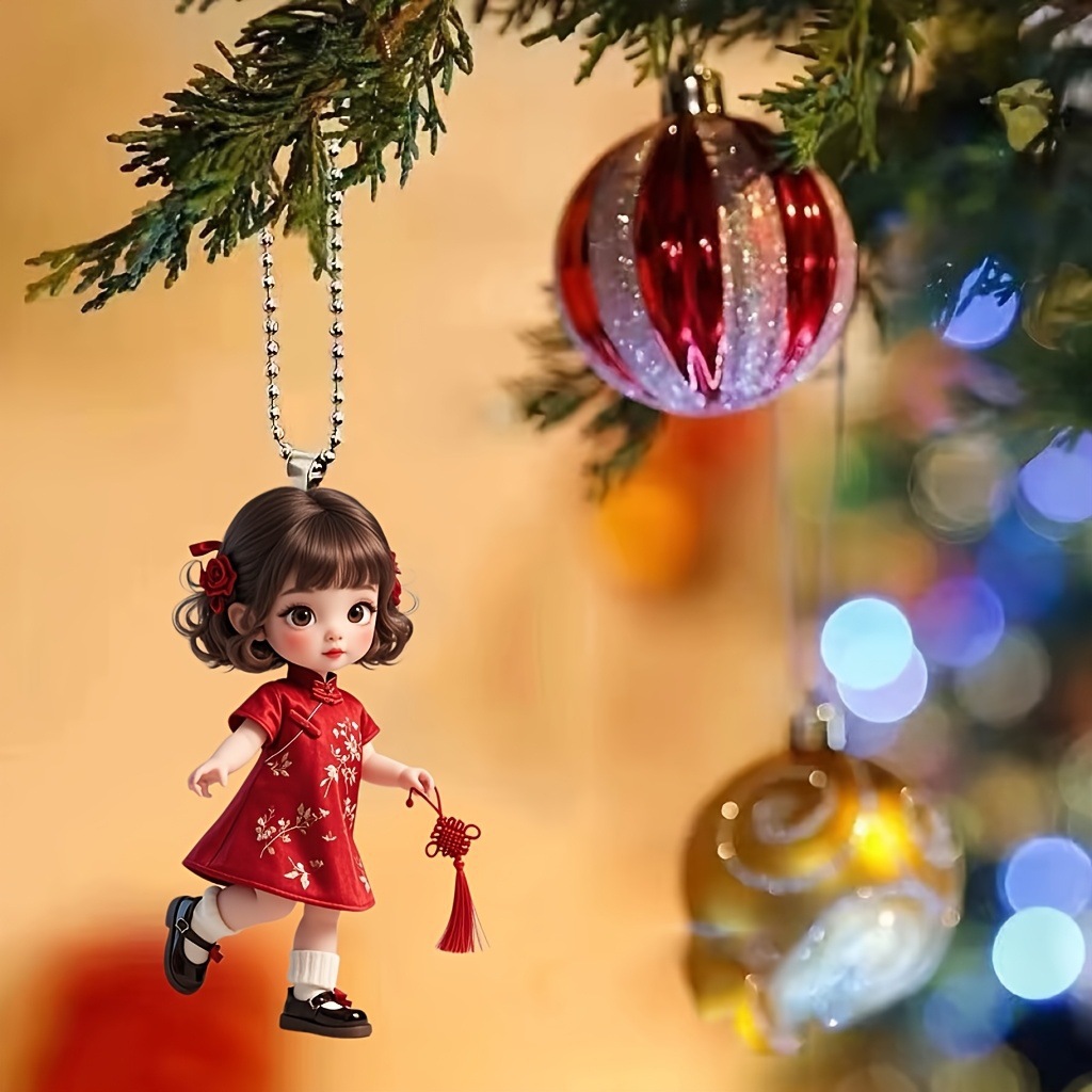 2D平面クロスボーダー爆型クリスマスツリーペンダント中国赤人形装飾車ミラー装飾バッグ