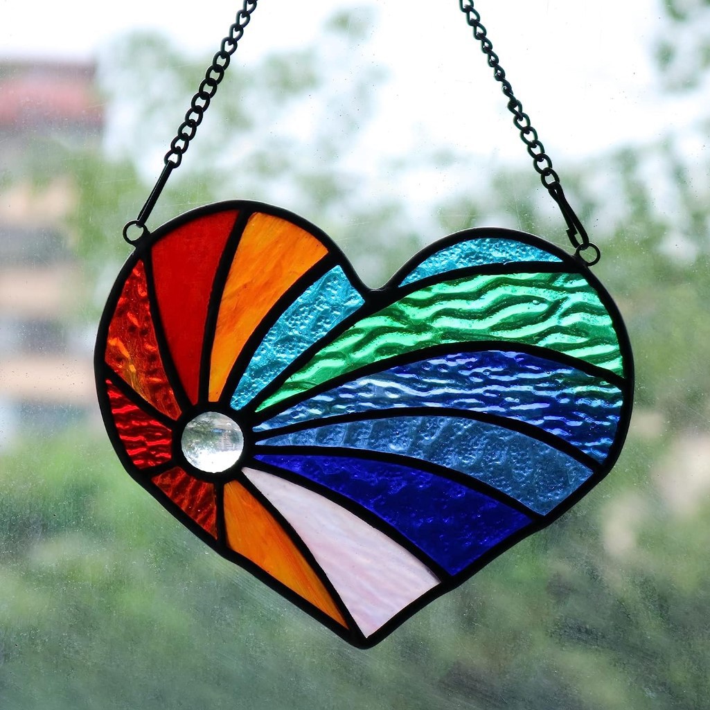 国境を越えた新しいバレンタインデーの愛の贈り物は、ステンドグラスの窓のペンダントの彩色ガラスパネルの装飾に使われています