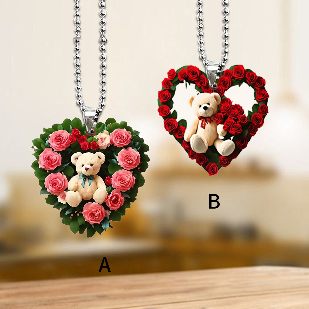 新商品クロスボーダーバレンタインデーハート型熊バラアクリルキーホルダー車載ペンダント飾りポーチ飾り