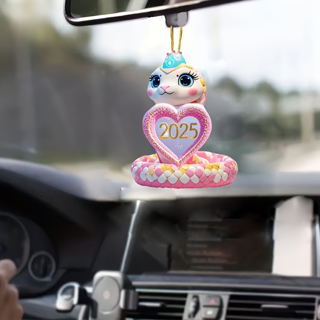 小さなプレゼント魅力的な2Dピンクハート型と甘い蛇ペンダント自動車バックミラーストラップ車載ストラップキーホルダー