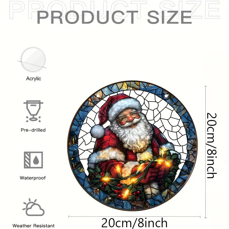 国境を越えたtemuアマゾンクリスマス村サンタクロースは円形アクリル窓吊り下げ装飾コレクション装飾を捕まえた