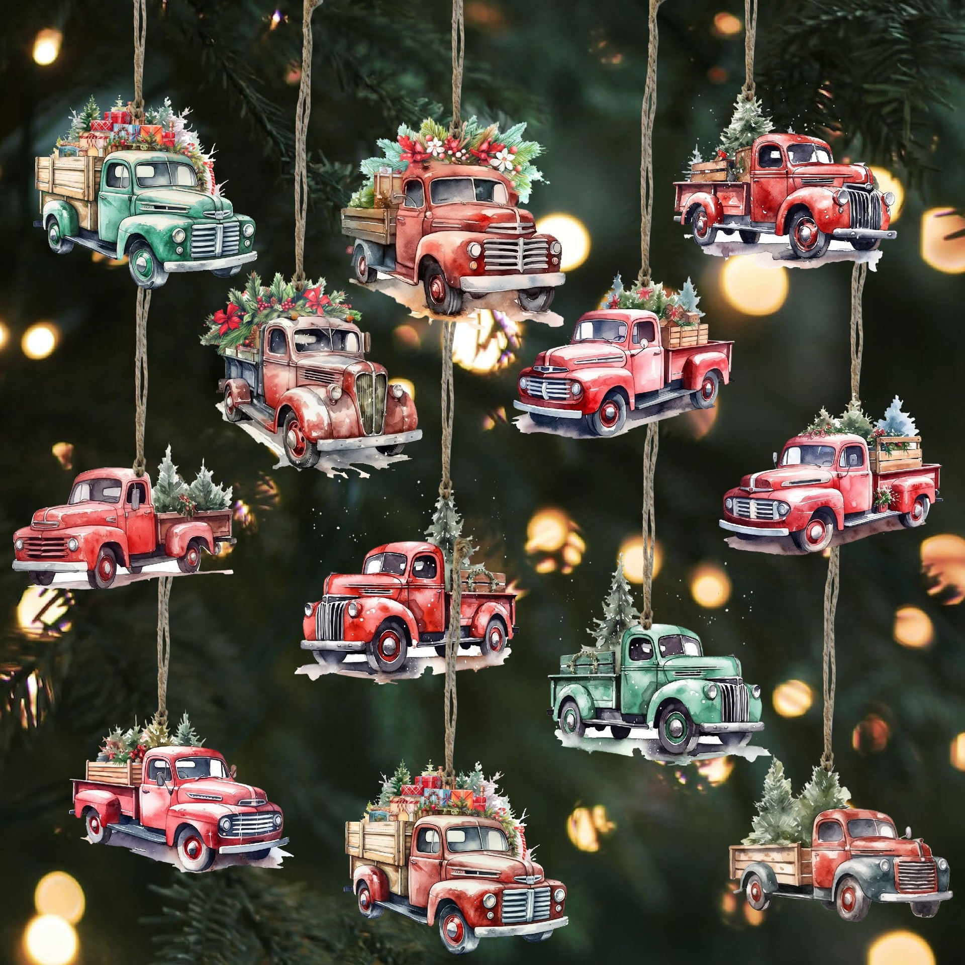 12ピース入り手作り木制レトロトラッククリスマス装饰祭り赤と绿祭り装饰セット