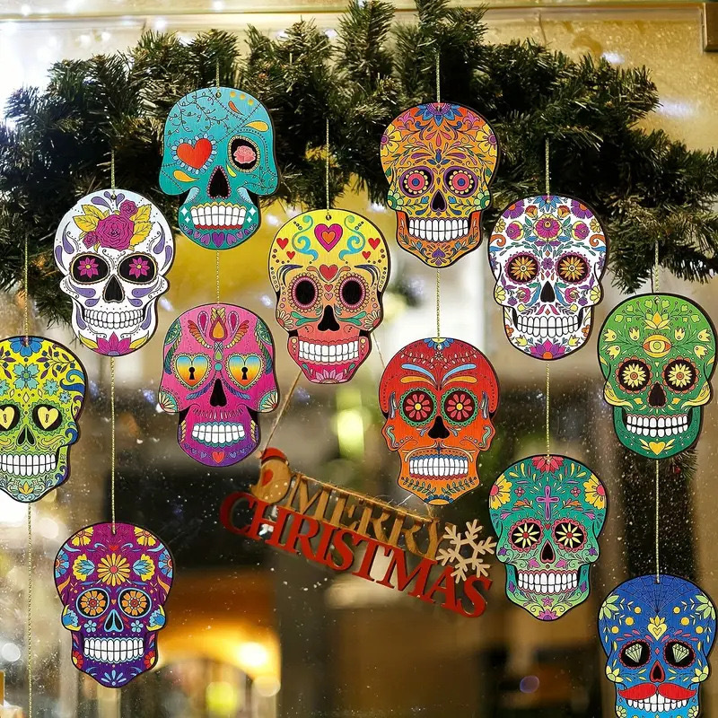 国境を越えた新製品ハロウィーン木製装飾品ストラップスカルセットクリスマスツリー装飾品クリスマスストラップ