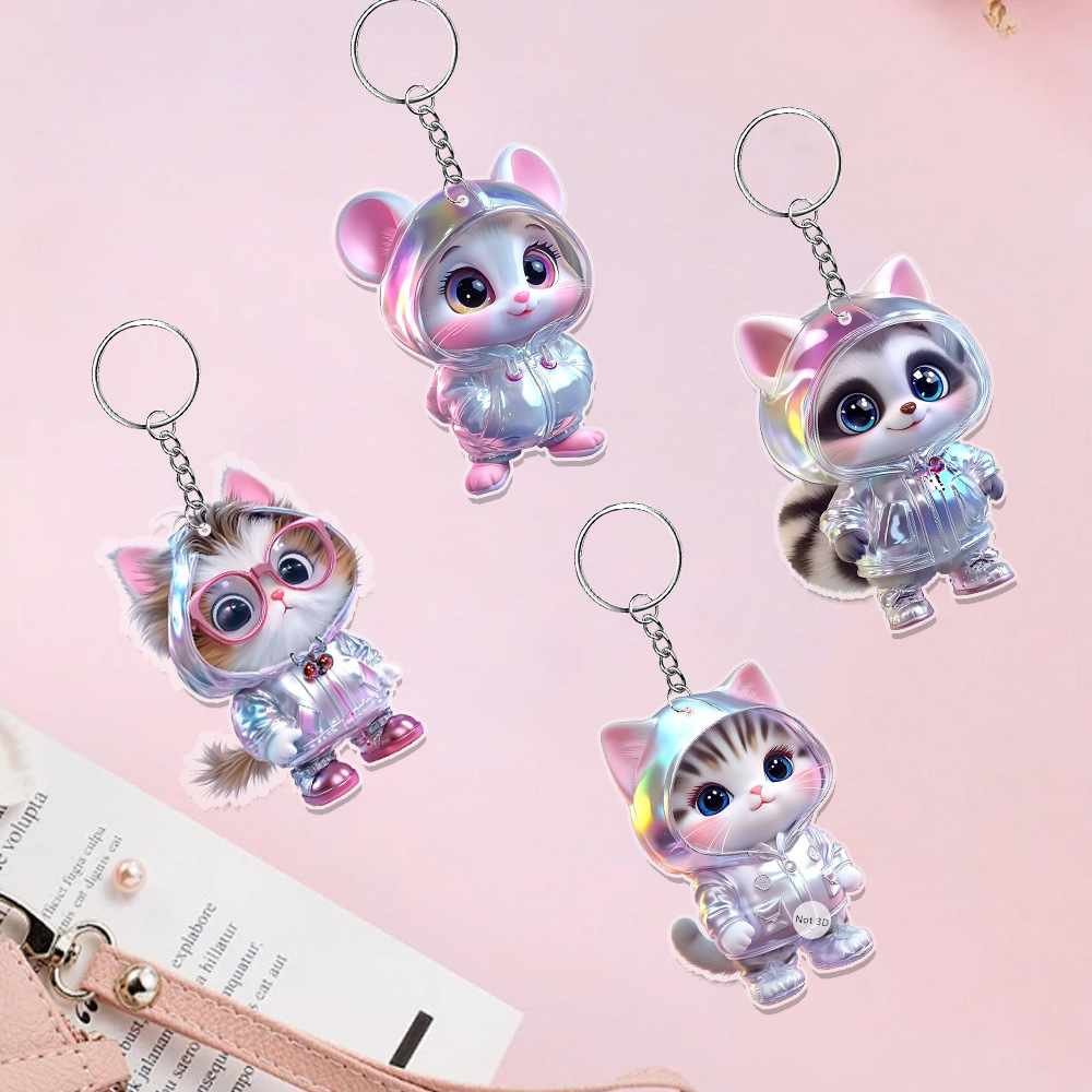 バレンタインデーの雨に着る猫のクロスボーダーアクリルペンダント、かわいい動物の2Dフラットアクリルキーホルダー