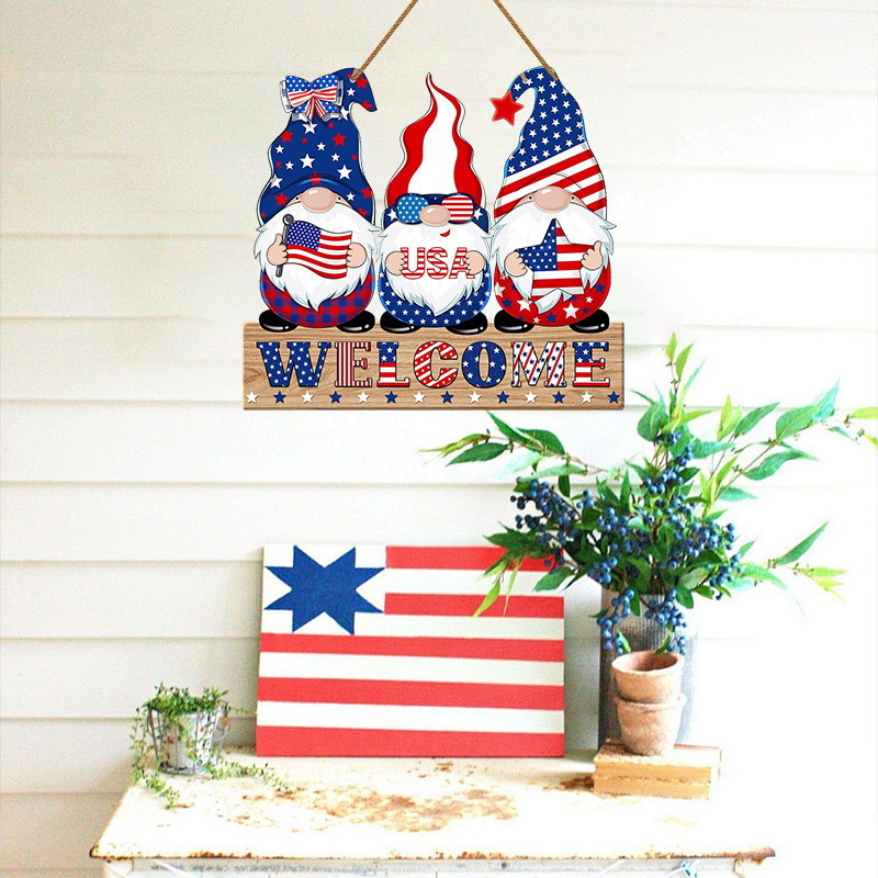 アメリカ独立記念日木製吊り下げ装飾ウェルカム装飾吊り下げノーム木製ウェルカムドアサイン独立記念日ドア吊り下げ