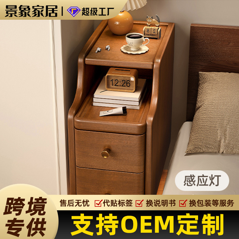 ベッドの頭の棚の全実木の寝室のベッドのサイドの棚の小さいタイプのミニの狭い辺はベッドの頭の置物を挟んで小さいタンスを収納します。