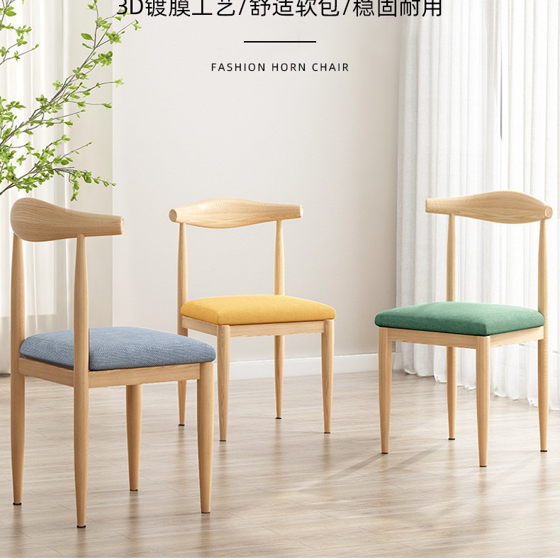 ホーンバックチェア家庭用シンプルで経済的なダイニングチェアレストランシート模造無垢材アイアンホーンチェア