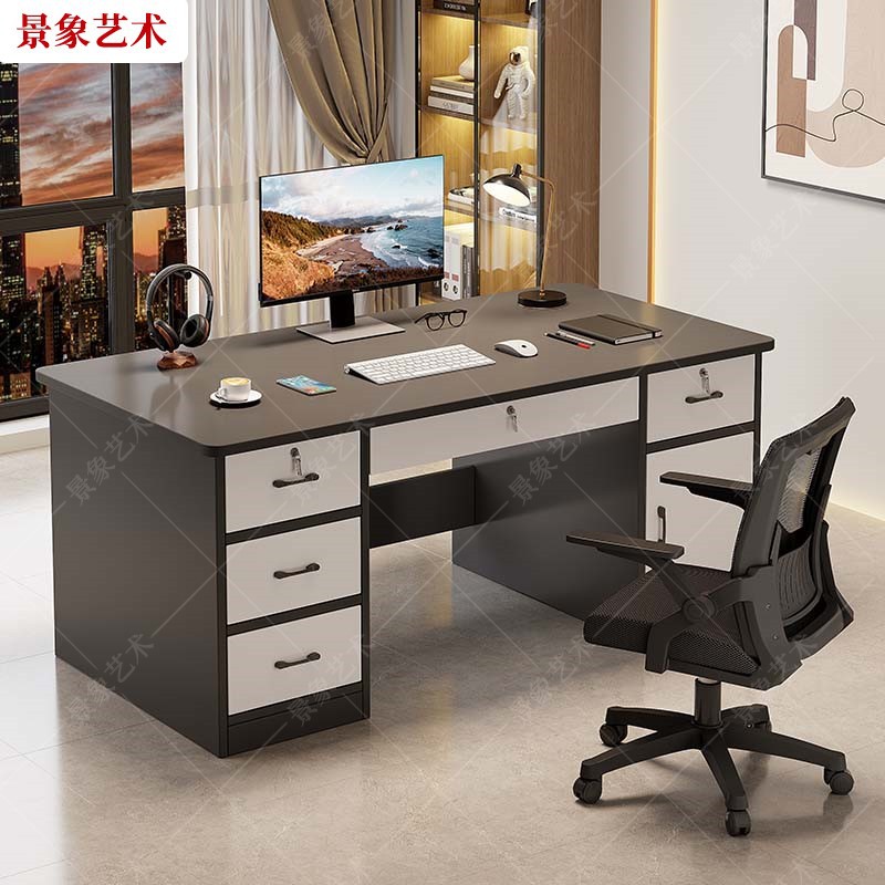 オフィスデスク モダンでシンプルなオフィススタッフ用デスクと椅子の組み合わせ 賃貸住宅用 長い作業台 パソコンデスク
